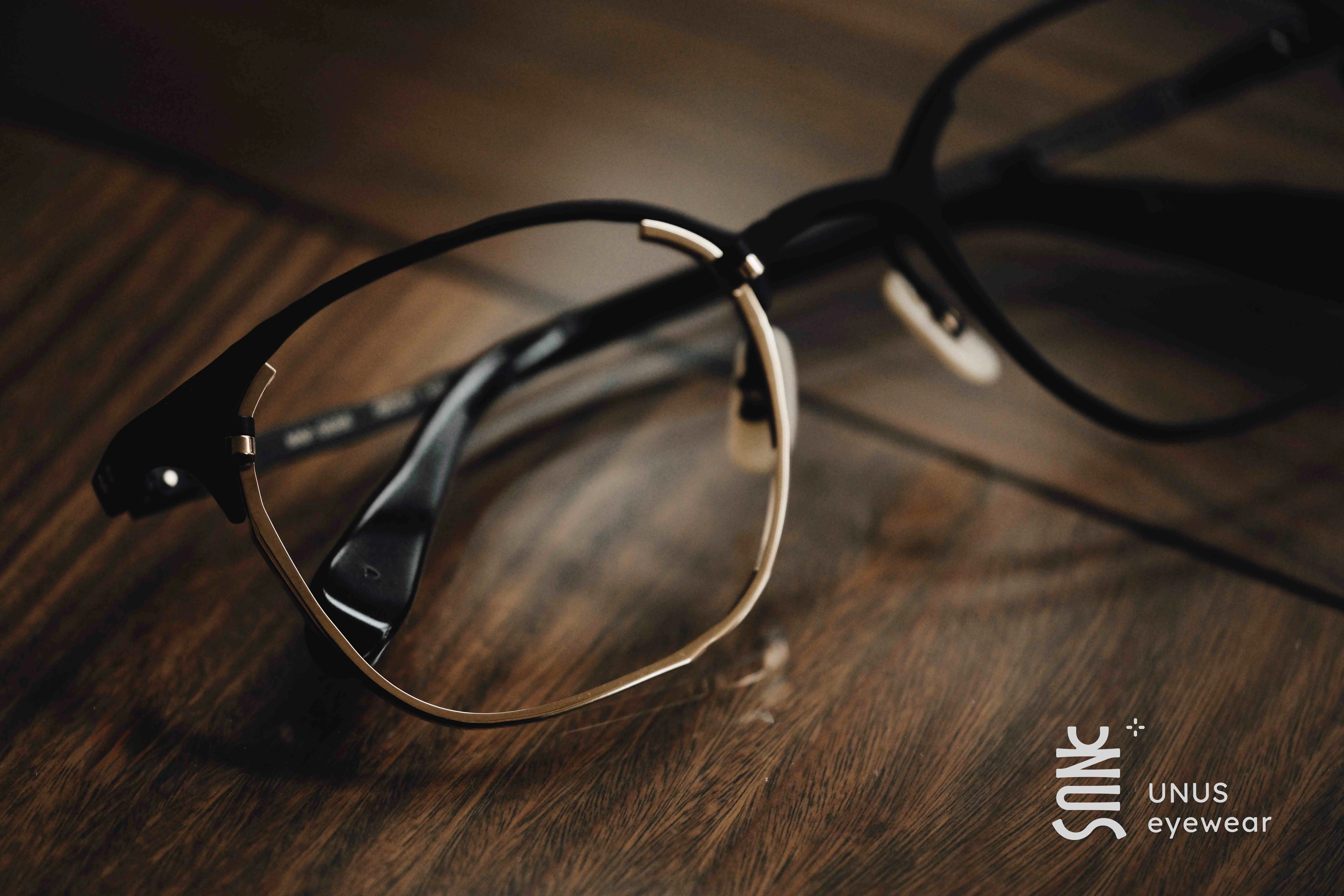這副MM-0056出自「2 side」系列中的金屬威靈頓鏡型,鏡的頂部設有中空設計,右眼下部則是金屬部件,完全展現出丸山正宏眼鏡的精粹。